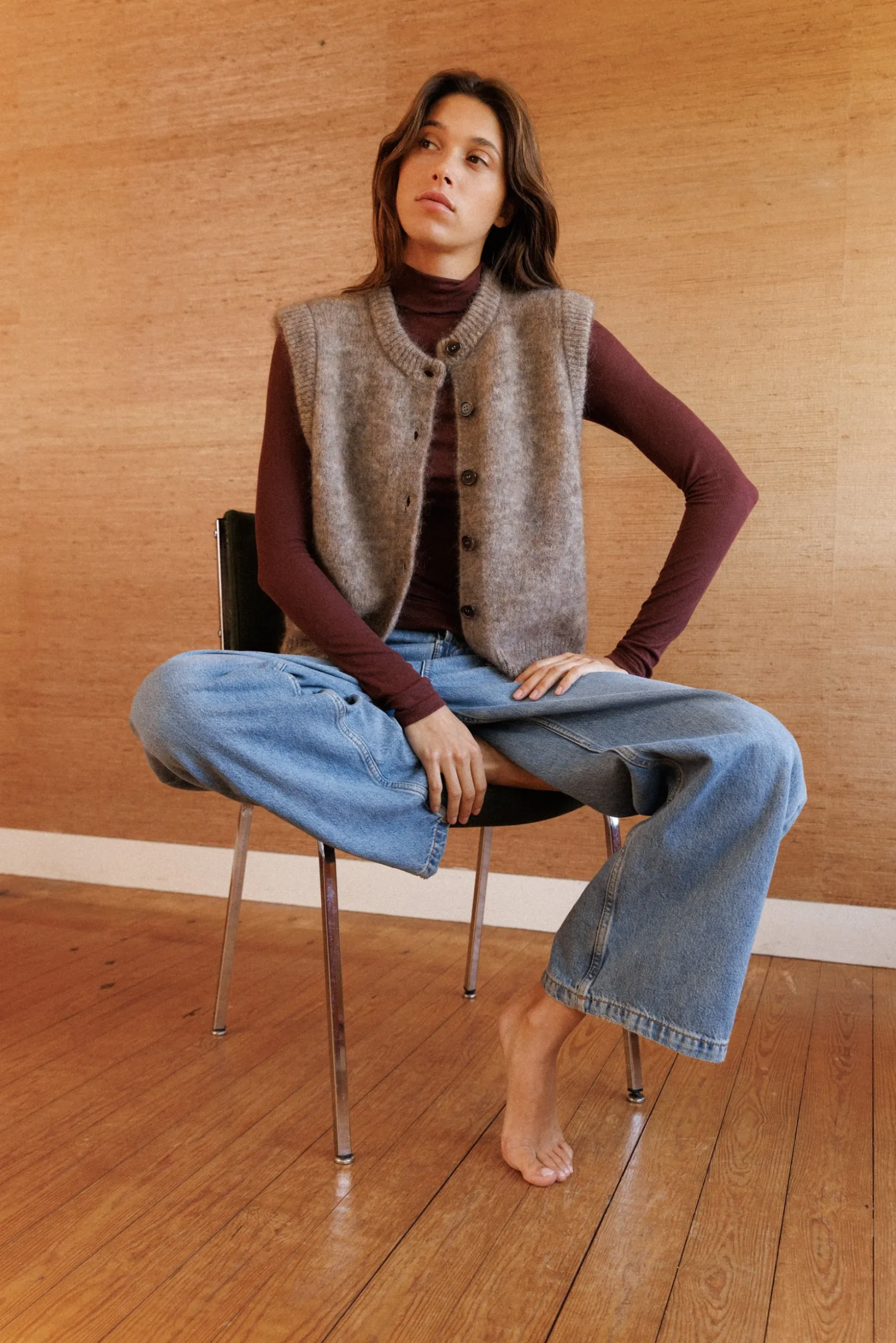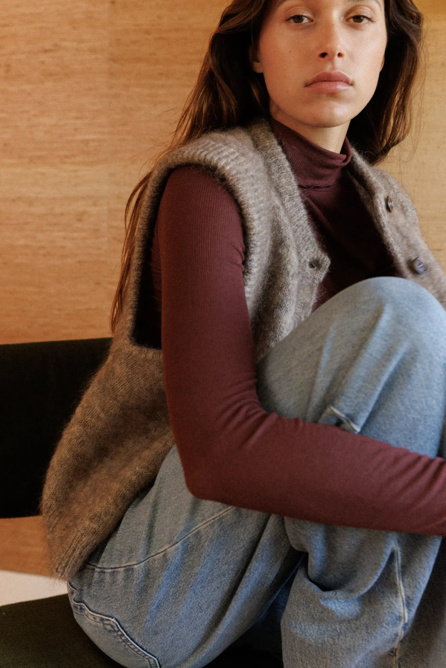 On vous présente Dans la nuit calme, LE gilet sans manches beige gris que l’on ne veut déjà plus quitter. Celui qui nous laisse sans dess(o)us-dessous.