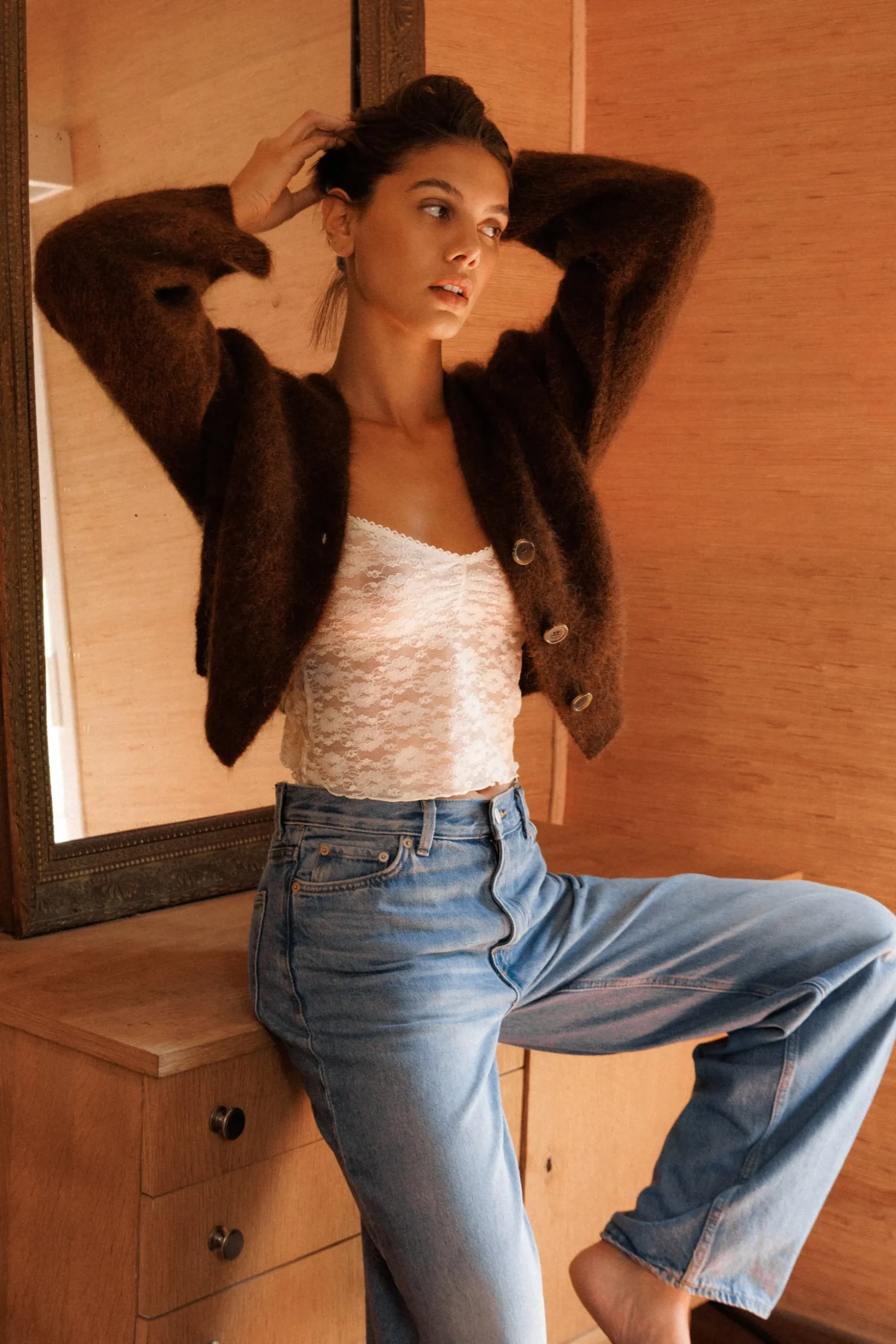 - Un volume boîte légèrement ample avec une finition en bord côte