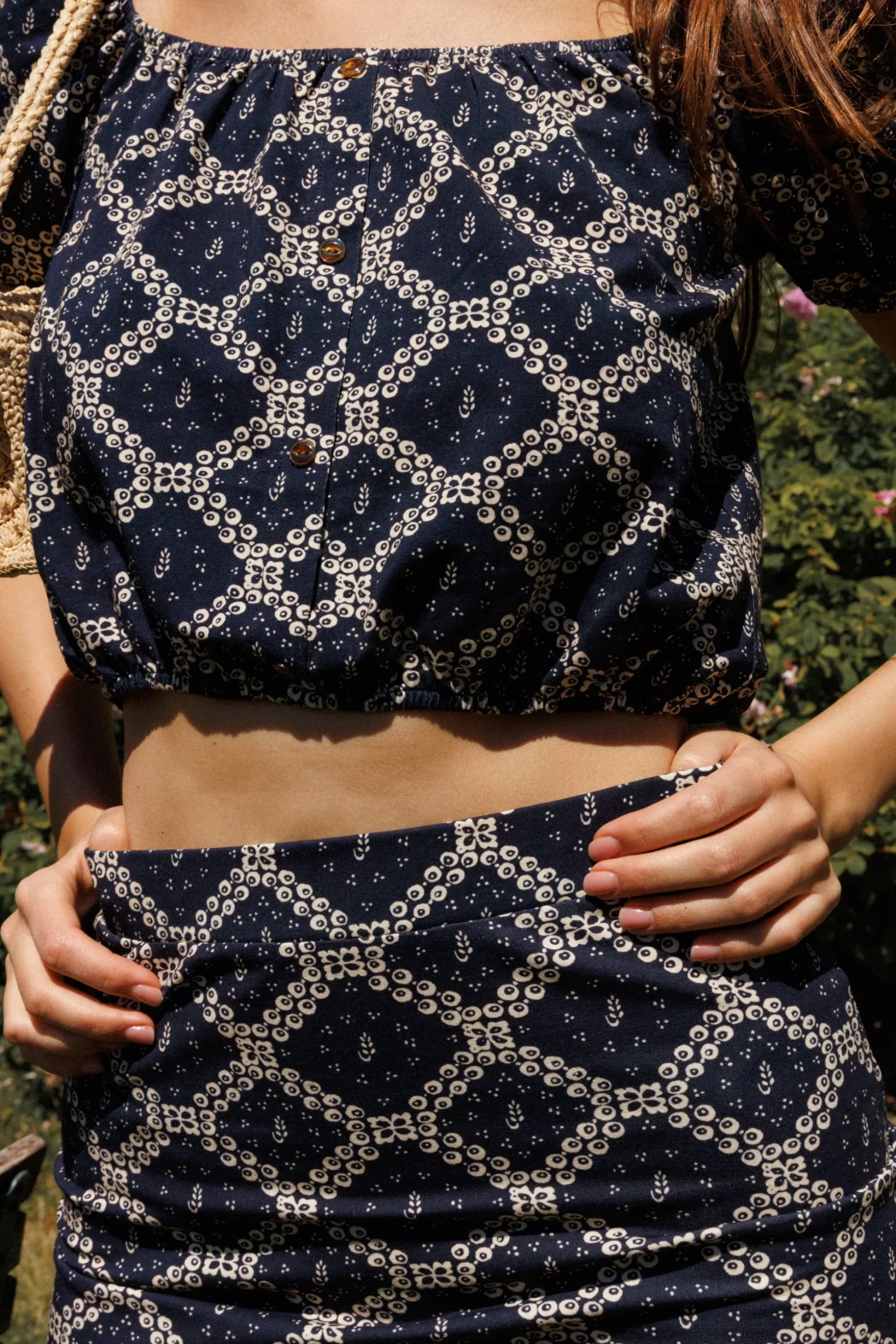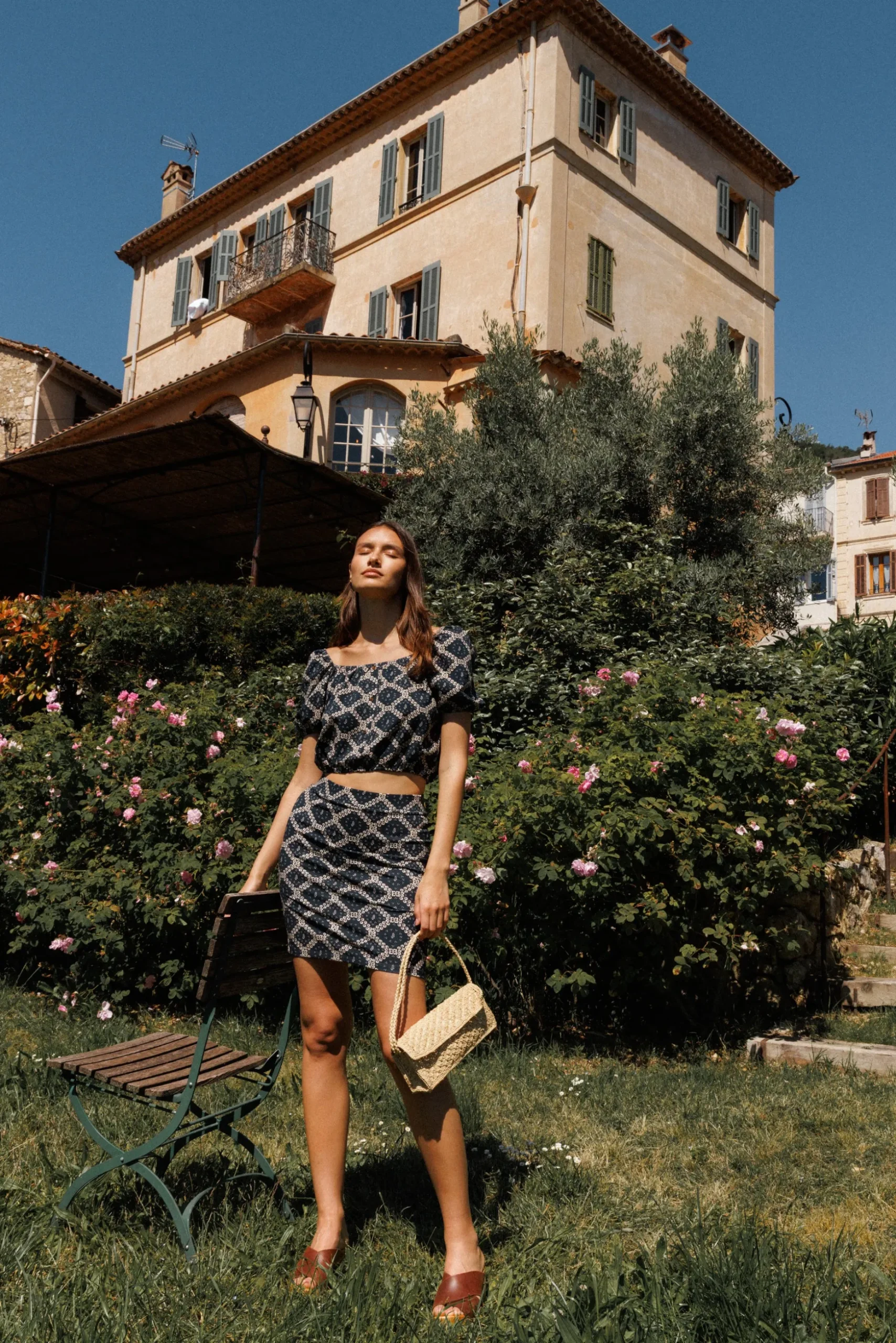 Quand le soleil décline, le Dîner d’été s’étire et cette jupe courte nous rappelle un parfum de Provence.