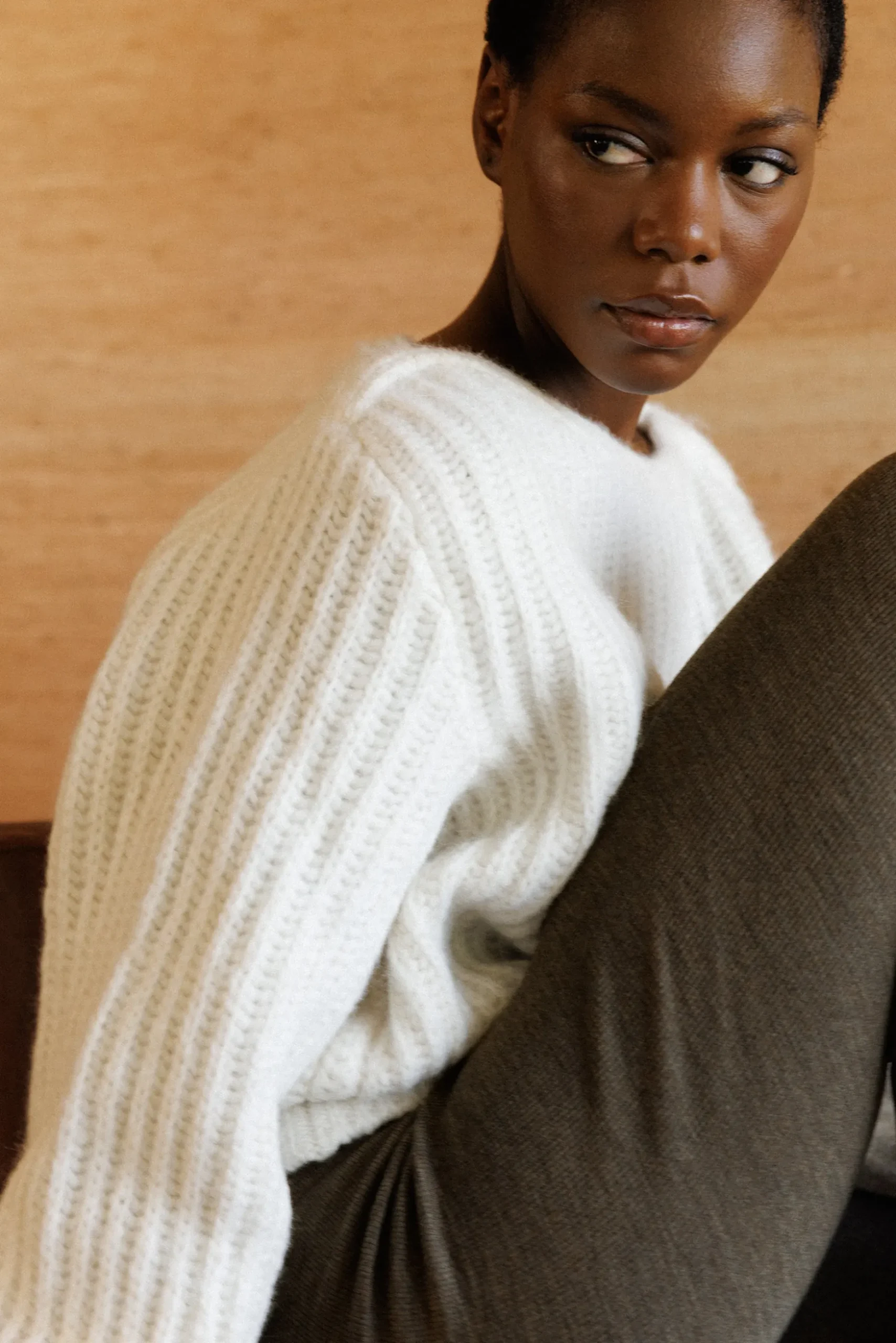 - un jersey côtelé en laine dans un coloris chiné qui apporte chaleur durant les journées d’hiver.