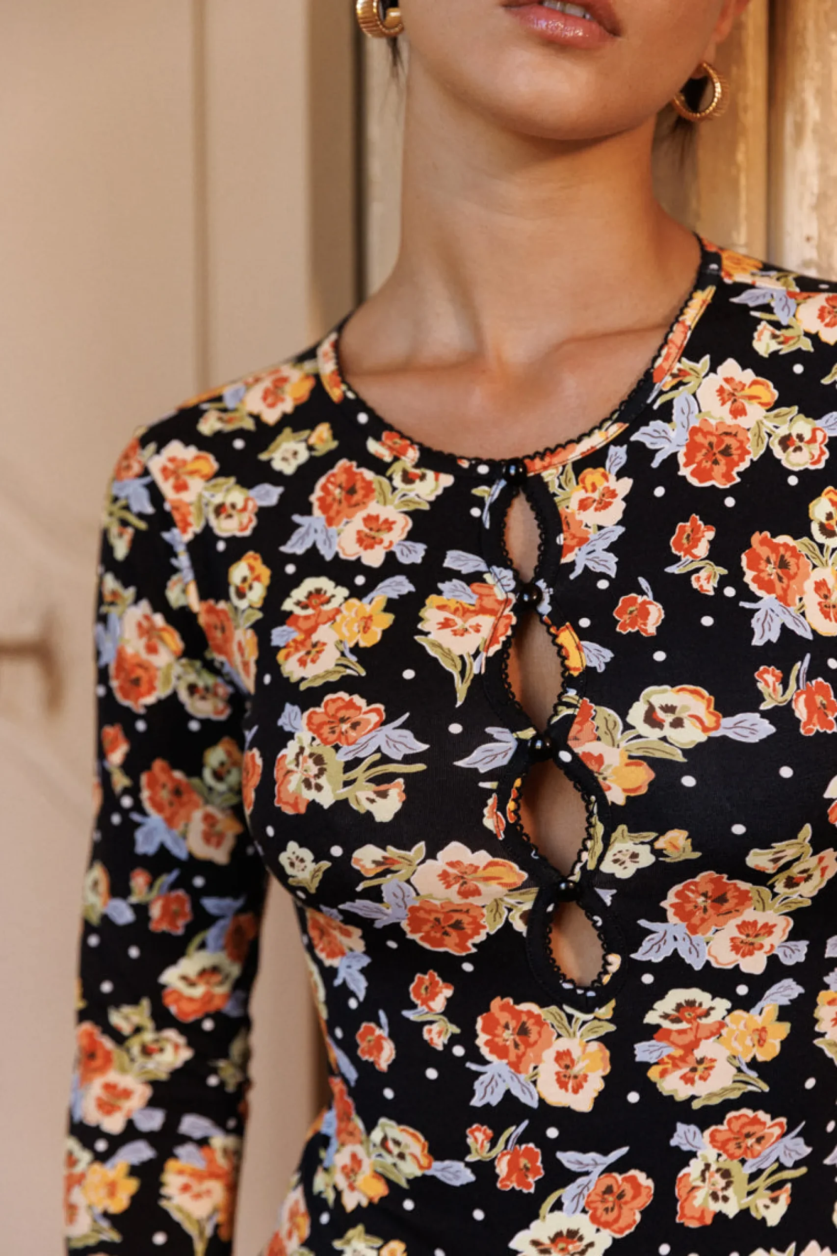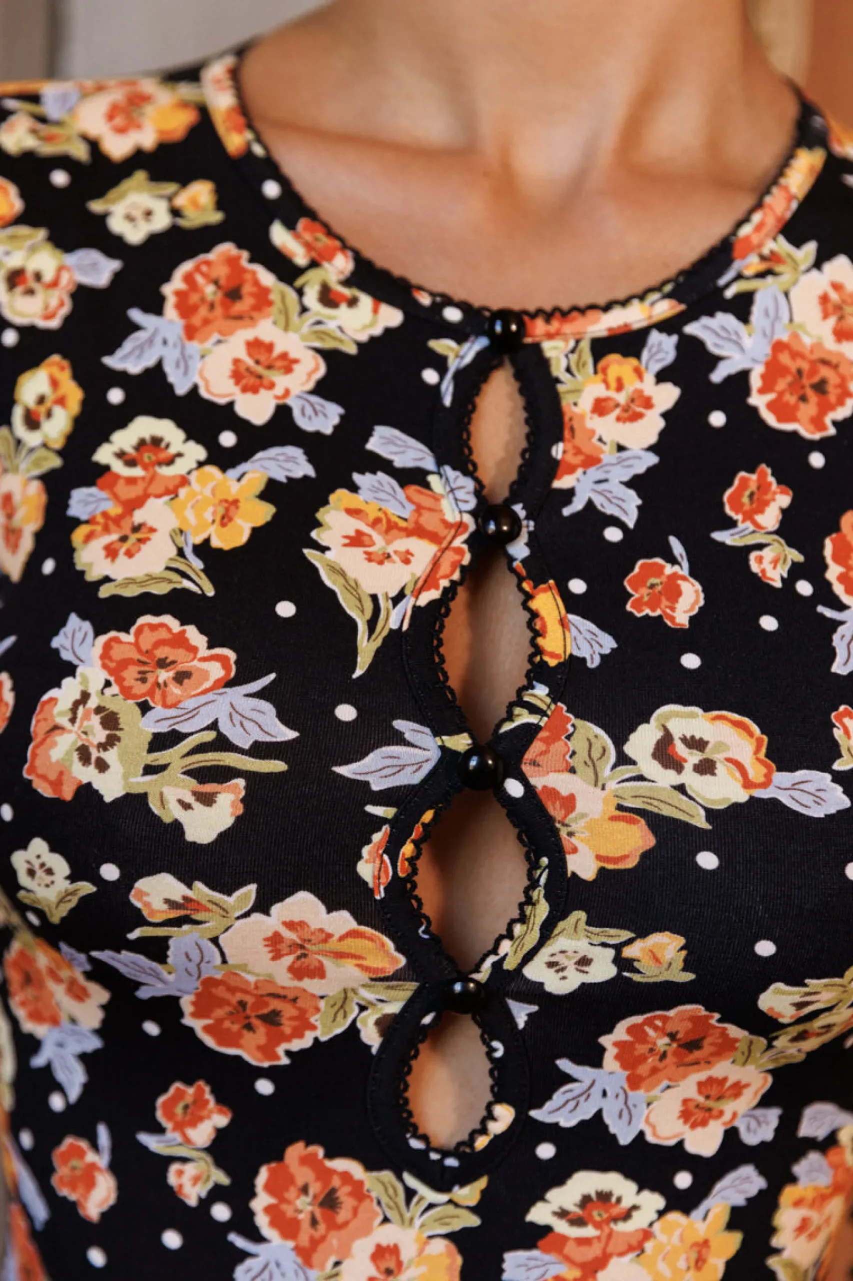- De jolies gouttes élégantes fermées par des boutons laissent entrevoir la peau pour un côté sexy