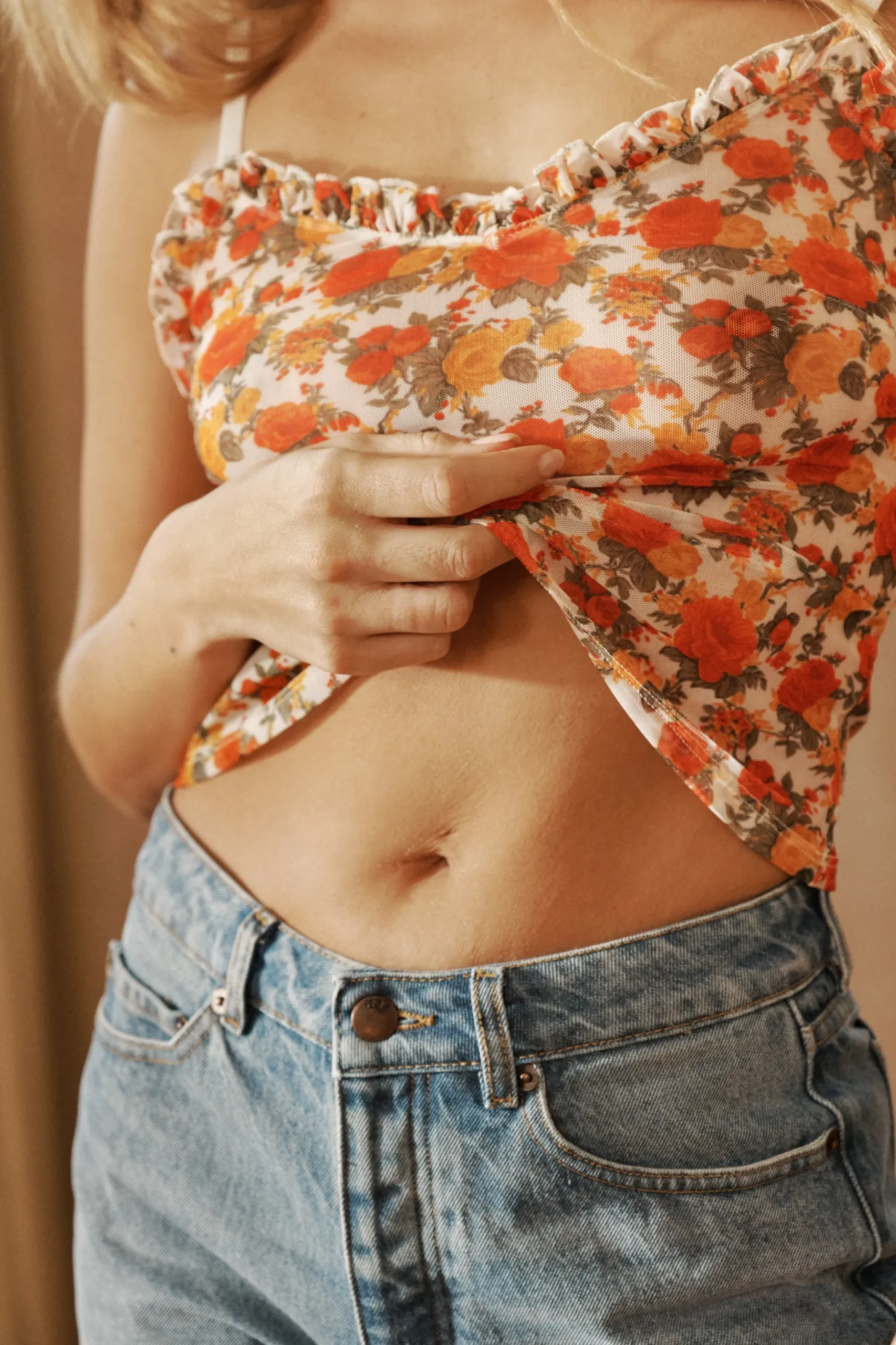 - Un caraco en tulle léger en version imprimé de saison