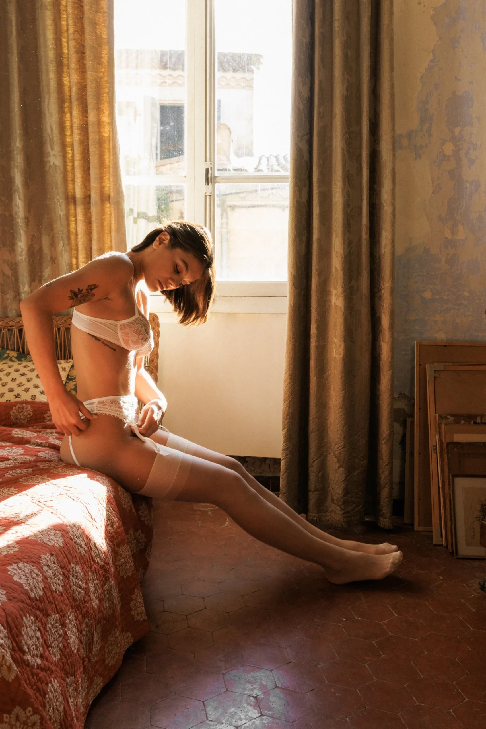 - Un porte-jarretelles chic et délicat en dentelle de Calais