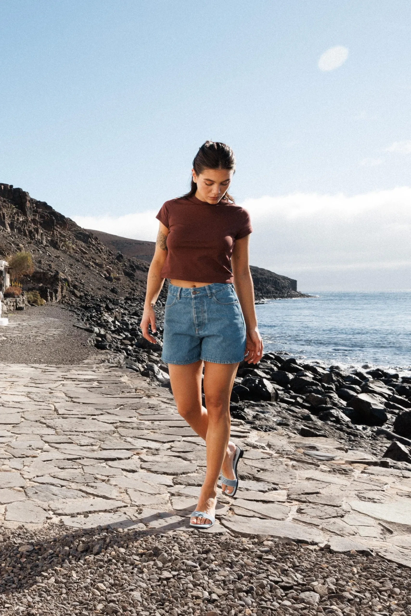 - Un T-shirt court et aux manches courtes