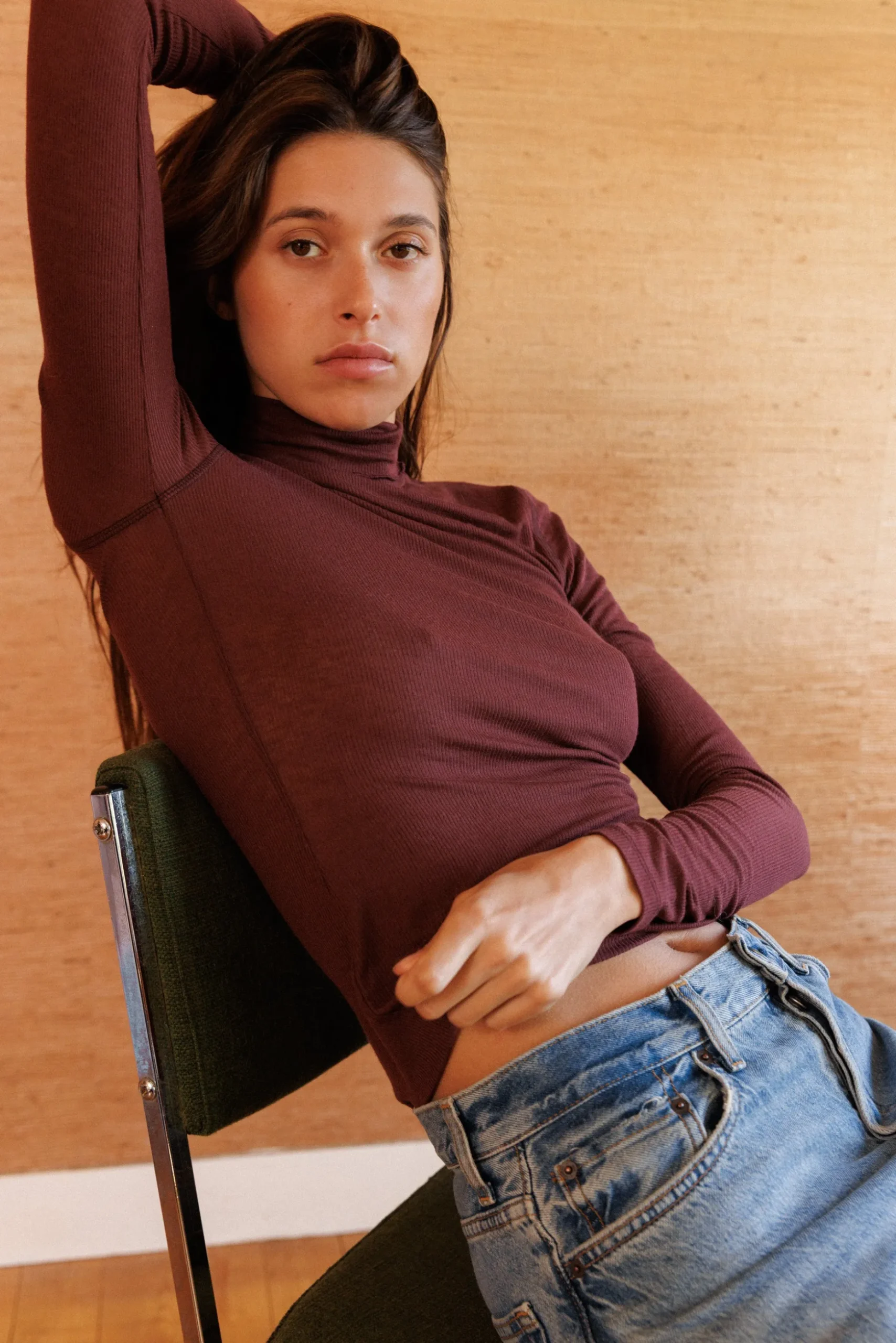 - Un top col montant aux manches longues