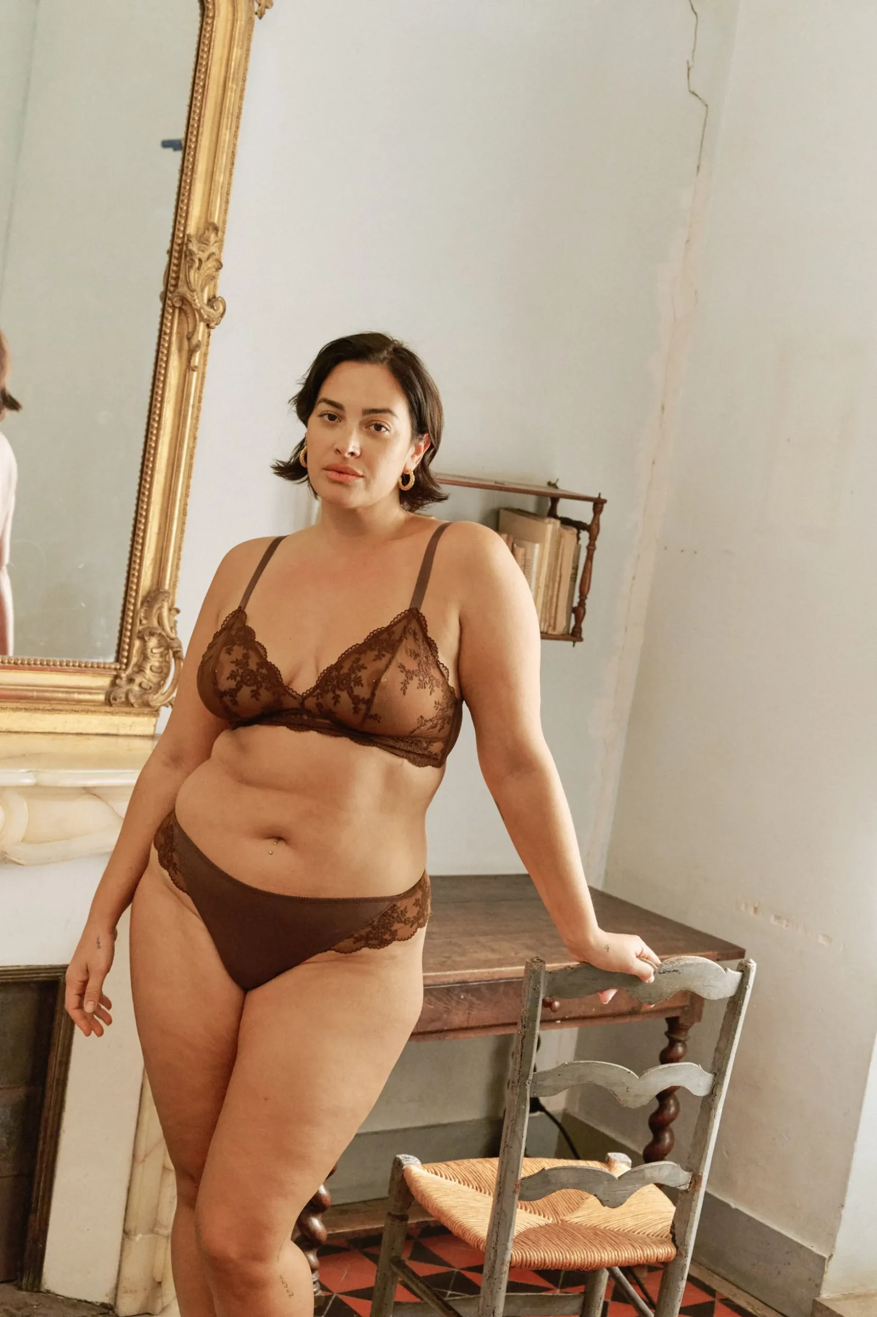 - Une large basque avec la broderie qui se dessine délicatement sur la peau